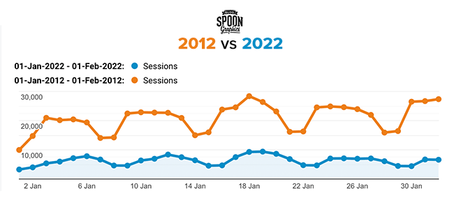 2008 levels, back when Spoon Graphics was in its infancy. I’m now seeing fewer daily visitors numbers than on Christmas Day of years gone by. For a website that has relied on a constant flow of traffic to monetize free content with supplementary ads, that’s not good news.