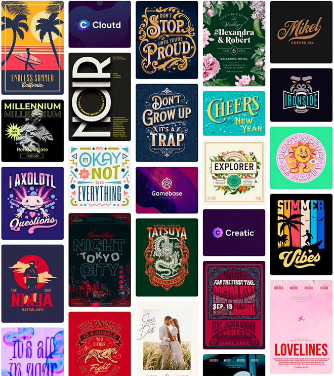 Edit a variety of great-looking designs made by world-class designers to easily produce custom logos, labels, T-shirts, posters and more. There are thousands to choose from and every single element can be edited. Of course, you can start from scratch with a blank canvas too!