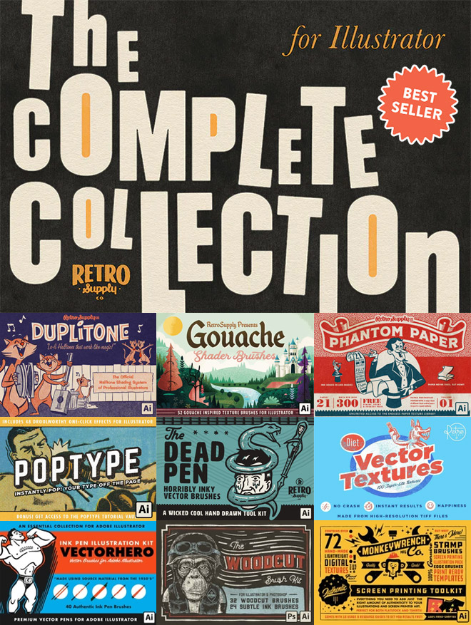 RetroSupply is the best place to find the retro-themed tools your software is missing to create analog-inspired artwork. Whether you’re expanding your brush library, adding textures or picking up unique fonts, RetroSupply has everything you need to keep your creative work fresh. Don’t wait – this sale ends Friday 22nd November, and supplies are limited!