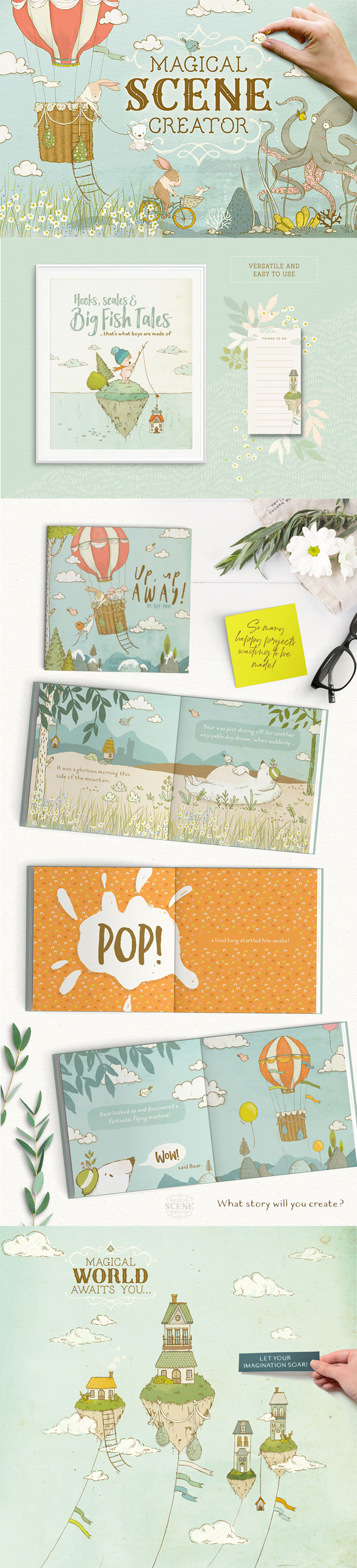 With a whopping 19 creators and 460+ individual elements included, you’ll be creating an enchanted underwater scene or an adventurous sky creation with just a few clicks. Each illustration is carefully named and well organised, simply turn layers on and off to customise your magical world!