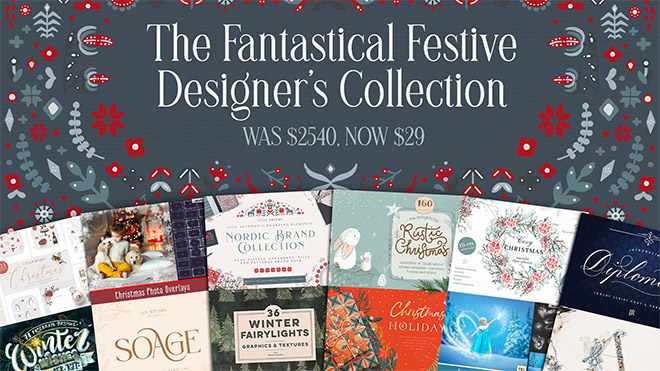 Like it or not, the countdown to Christmas will soon be underway (I'm sure it starts earlier every year!) That inevitably means we will soon be working on festive themed design projects, creating holiday sale graphics, sending seasons greetings to friends and family, or even designing your own Christmas cards and wrapping paper. If your toolkit is in need of some festive cheer, there's currently a special Christmas themed resources bundle on offer