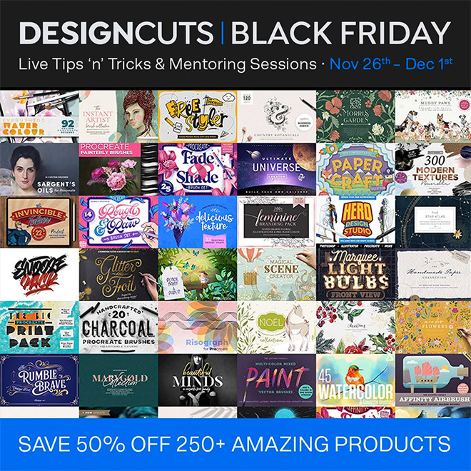 Save 50% off over 250 of the most popular design resource products at Design Cuts, including Procreate tools, graphics, fonts, and more. Offer ends Dec 1st.